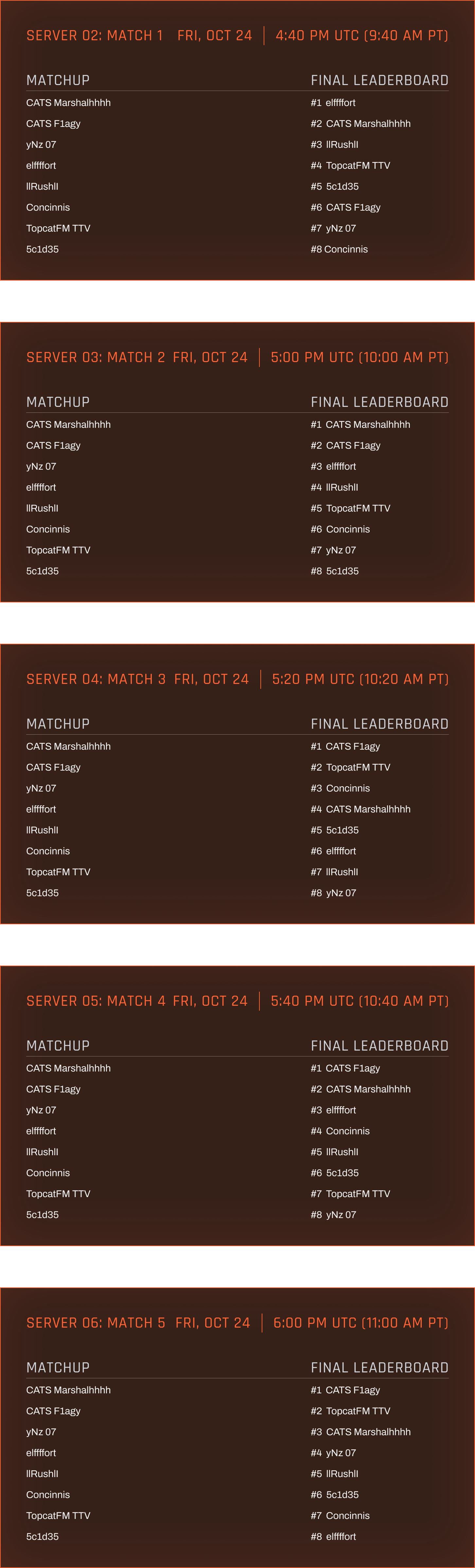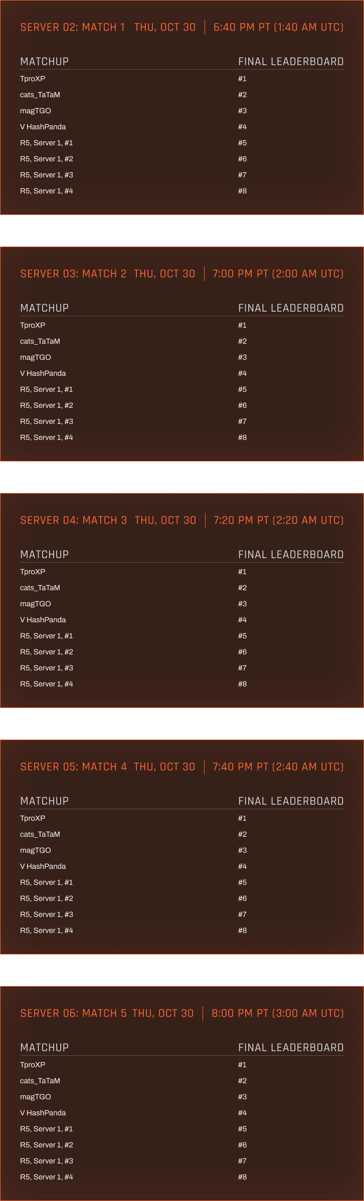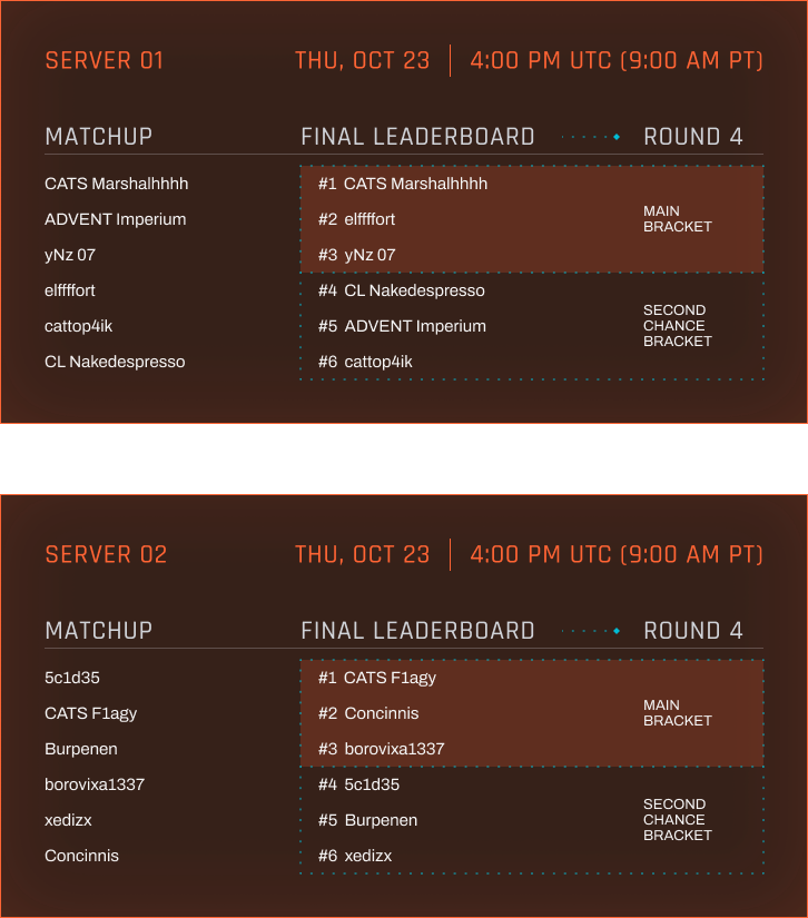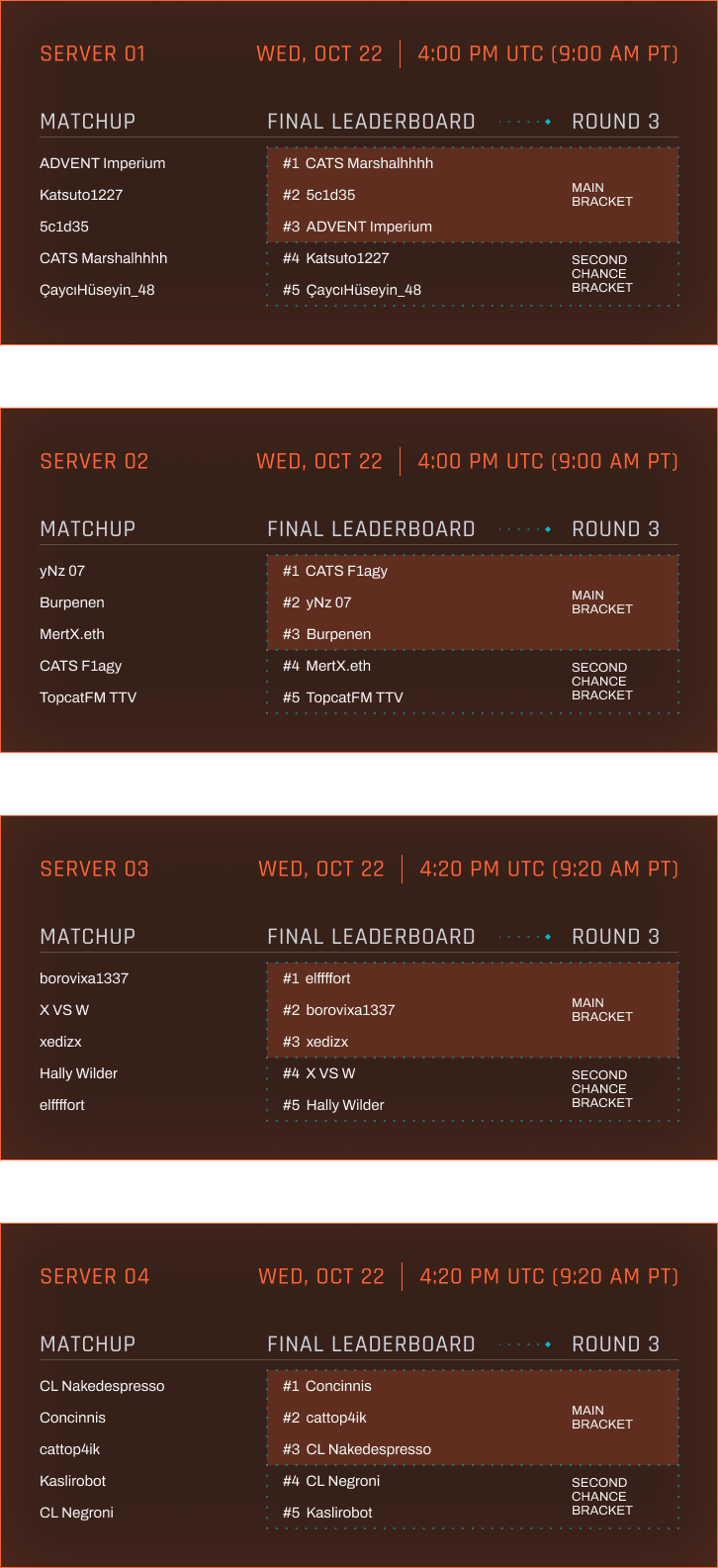 Second Chance Bracket: Players from the previous Second Chance Round, along with those who dropped from the Main Bracket, compete across 3 new servers to stay in contention. With the field narrowing, pressure is at its peak — only the top performers remain.