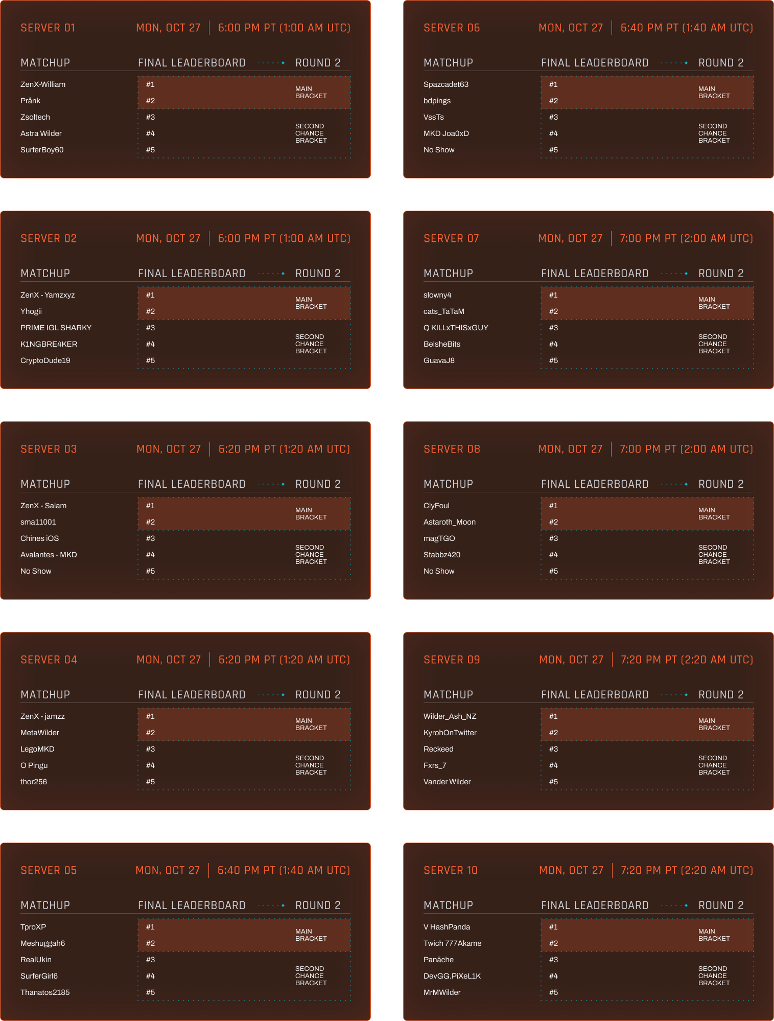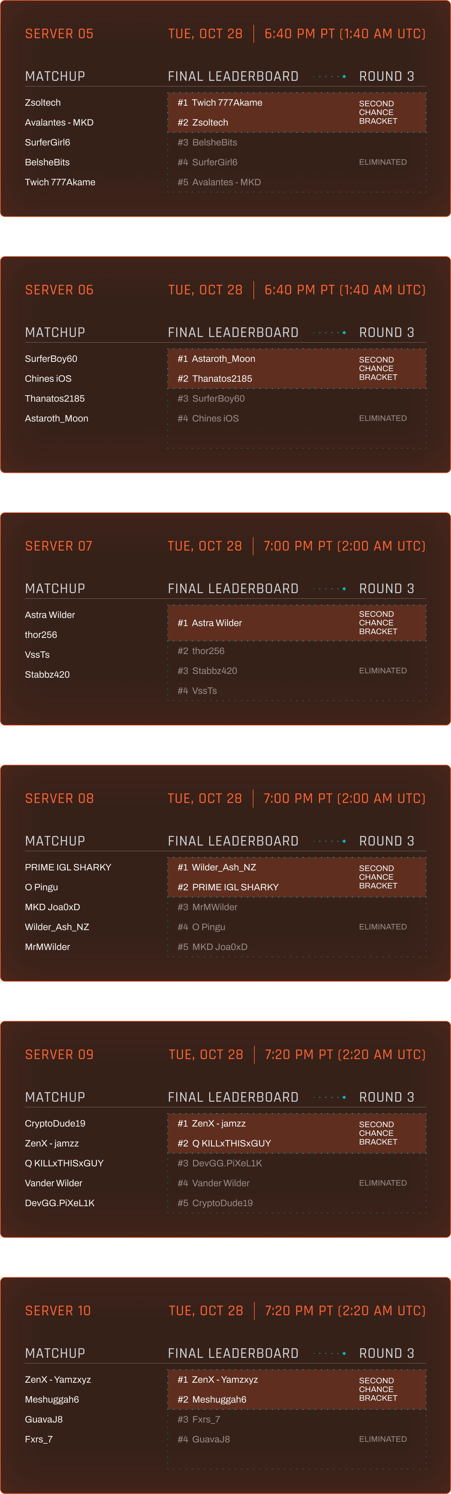 - Top 2 of 5 in each server advance to Second Chance Bracket Round 3.