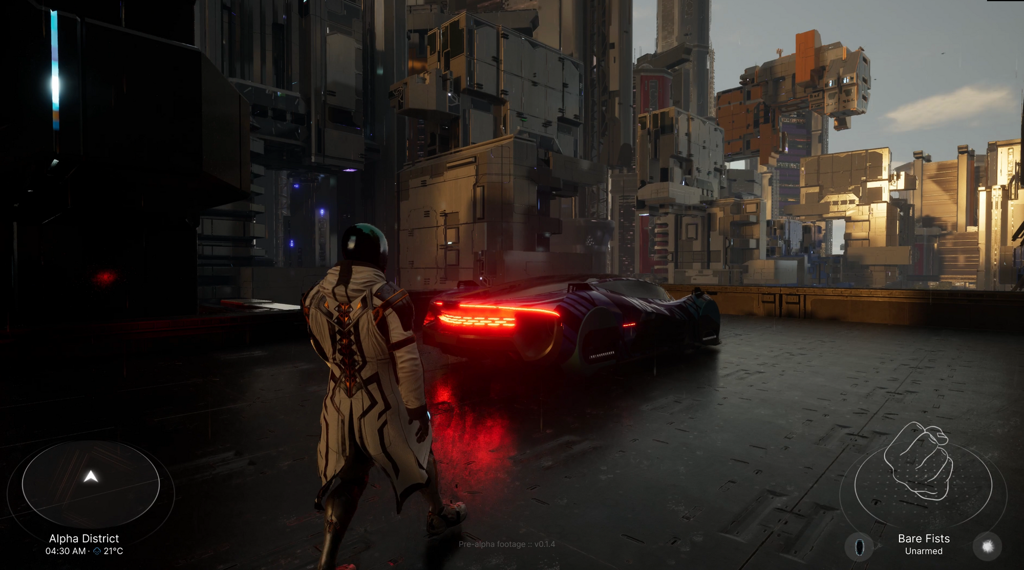 The Pre-Alpha Gameplay Teaser primarily showcases Era 2, featuring cyberpunk structures with a focus on steel, metal, and carbon fibre. Era 2 is led by Brandon Gobey, who was a Senior Concept Artist at DNEG and played a key role in their Oscar-winning VFX work on films like "Avengers: Endgame", "Tenet", "Dune", "Blade Runner 2049", and "The Dark Knight Rises".